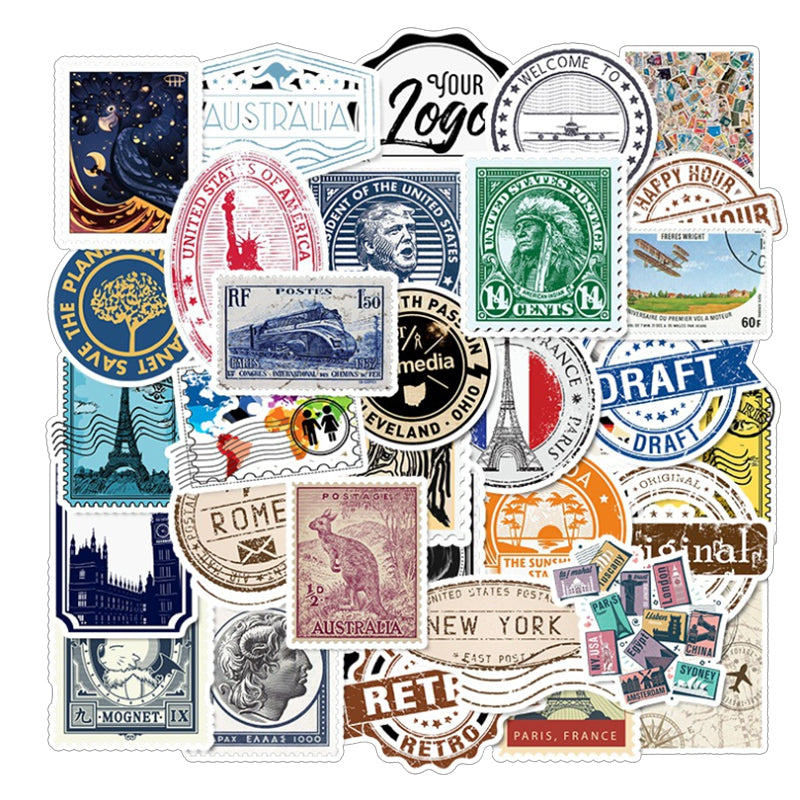 50pcs Retro Vintage Stamps 1 Stickers